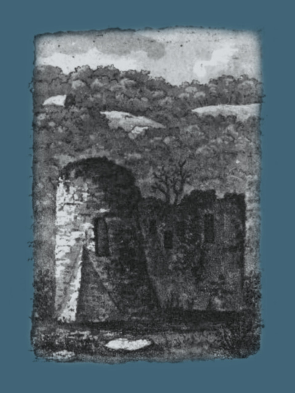 The town of Landaff is small, and the example exhibited by its ecclesiastical edifice, has become a proselyte to the pattern of its neatness: no sooner had I taken my farewell of this place, than the river Taffe presented itself; the beauty of its varied shores was pleasingly harmonized, by the breadth and transparency of its murmuring stream; passing over it by a bridge of two arches, at the distance of two miles to the left, through a country replete with objects to render scenery interesting, and delightfully pleasing by the countenances of the inhabitants so expressive of happiness; the canal became my close companion, and the river I had lately left, was winding through the vale in fanciful directions, to make it most agreeable to the eye; its boundaries comprised every charming assemblage of pleasing variety, in which the united efforts of nature and art were most tastefully displayed: the opposite hill was beautifully clothed with coppice wood, that gave it a forest-like appearance, and rendered it doubly interesting by the situation of Mr Lewis’s iron-works, and the many residences of those who are there employed; the attention now became particularly engaged on a castellated ruin, which though it bore the evidence of great decline, was marked with the character of ancient splendour; its walls were partially veiled by a mantling of ivy, and placed midway down the mountain’s side, its rear was so thickly overshadowed with embowering trees, as to deny the rays of the sun to penetrate; while in other parts you observe masses of limestone, embellished with timber, finding subsistence from the crevices of its rocks: a workman being employed at the lime-kilns below it, (who I was delighted to find understood sufficient English to be sensible to my request,) induced me to enquire of him the name of the castle, and if any history, traditional or otherwise, was related to it; but here the unaccommodating disposition of one of the lowest order of the people, in denying a stranger the least information, put my humor to the test, and had an oath been pardonable, it would have claimed privilege on this mortifying occasion.